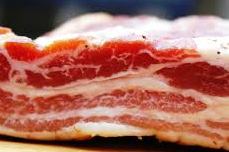 Bacon: pork belly sides that are brined and then smoked.