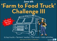 On Saturday, June 9th, SoCo Certified Farmers’ Market will host its Farm to Food Truck Challenge III, a farmers’ market inspired cooking competition. Top gourmet food truck chefs will compete in an epic Clash of the Titans, as our winners of the Farm to Food Truck I come back to defend their title against the challengers of our Farm to Food Truck II. The “Top Chop Truck” title will be given to the Chef who can create the best dish using locally grown farm fresh ingredients. More than 15 gourmet food trucks will be present at the weekly farmers’ market from 9 am – 2 pm with 6 select trucks competing.
