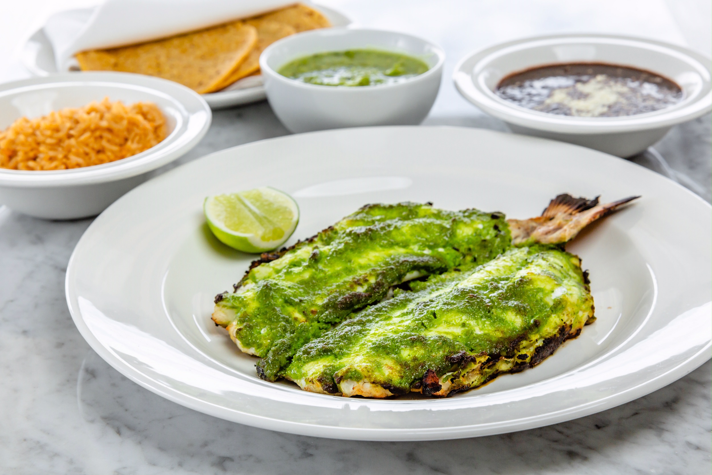 Yet the menu does not stop there, it expands to marinated meats such as the Pork Spare Rib with AquaChile glaze, Al Pastor Tacos with charred onion, pineapple, cilantro, and salsa verde, and Roasted Chicken with mole, rice, onion, and white sesame seeds, among many other dishes. To highlight a small note of interest in the freshly prepared cuisine of Chef Michael Gaines, the restaurant goes through over 200 pounds of masa daily and they order about 12 to 15 cases of avocado practically every day.