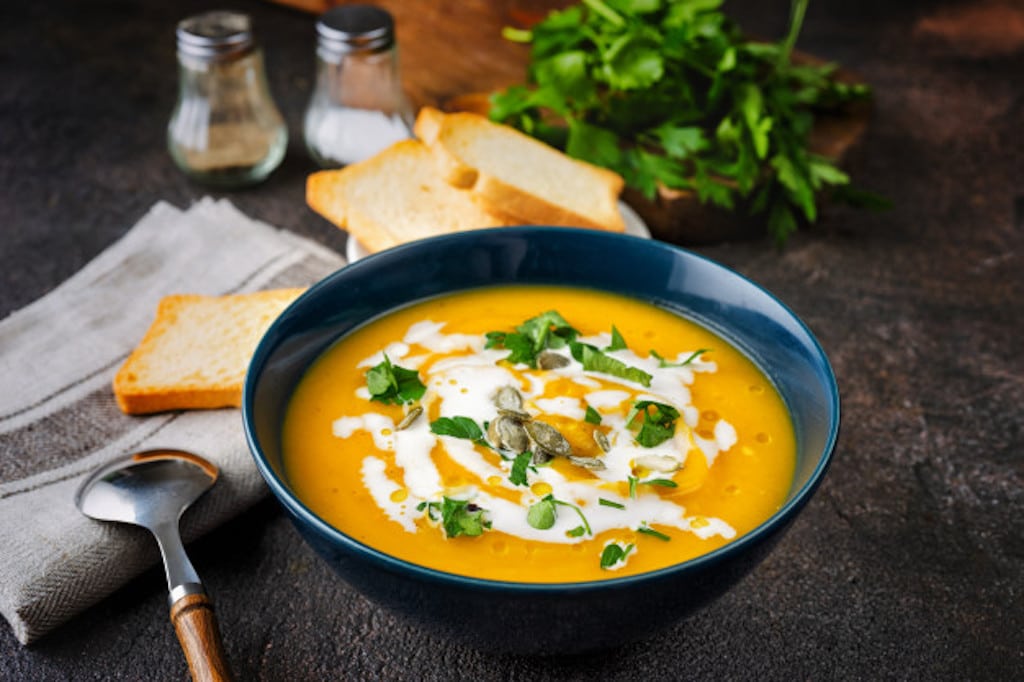via bluejeans (which is like ZOOM) – Link and Recipes to be provided upon Registration Menu: Curried Butternut Squash Soup