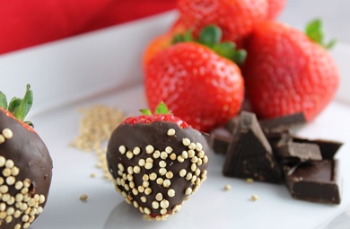 Chocolate Dipped Strawberries with Popped Quinoa