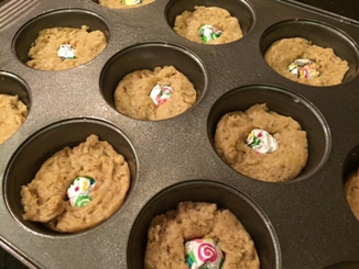 Place one muffin cup ball in the center of the muffin tins.