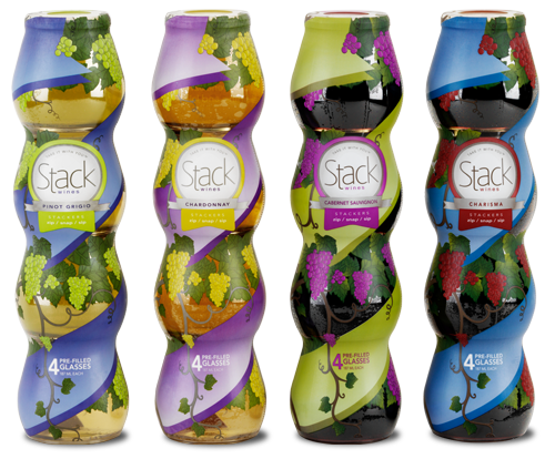 The revolutionary packaging is what really sets Stack Wines apart! No hassle of a bottle, corkscrew or stemware! Stack is a bottle of wine separated into four steam less wine glasses that are high-quality plastic that is shatterproof and lightweight. Each glass contains 187 ml of wine and a 4-pack has the same volume, 750 ml, as a traditional wine bottle!